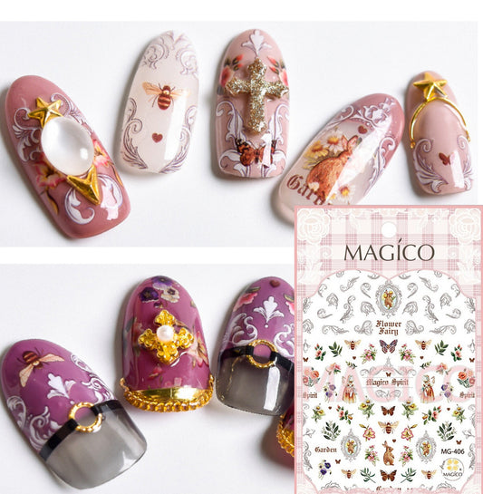 Vintage woodland Rococo Nail Art Sticker/ Butterfly Bee DIY Tips Guides Transfer Stickers/ Retro UV gel nail polish manicure stencil