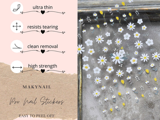 White Daisy flower Nail Art Sticker Peel off daisies Stickers/ Chrysanthemum Oxeye Bouquet flower Manicure Nail Supply Ultra thin decal