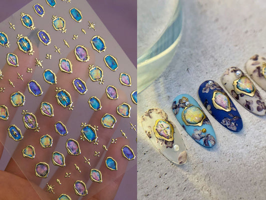 Vintage Gemstone Prints Gold framed Gilding Nail stickers