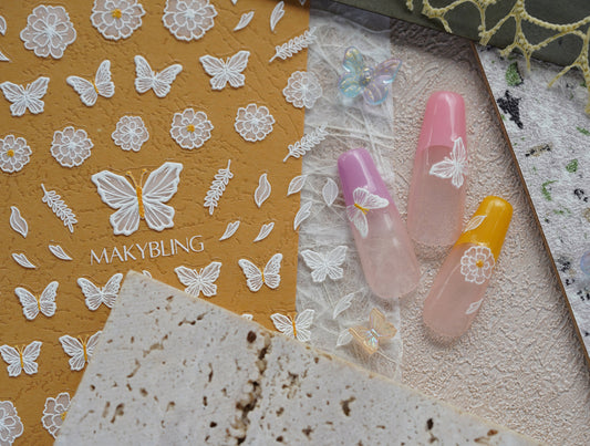 White lace nail sticker/ Spiritual Starry 3D Nail Art Stickers Self Adhesive Decals