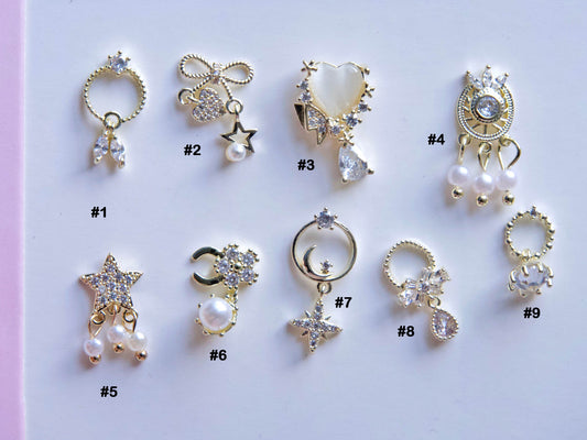 14k Gold Zircon Nail Dangle / Instagram 3D Nail Ornament Nail Decal