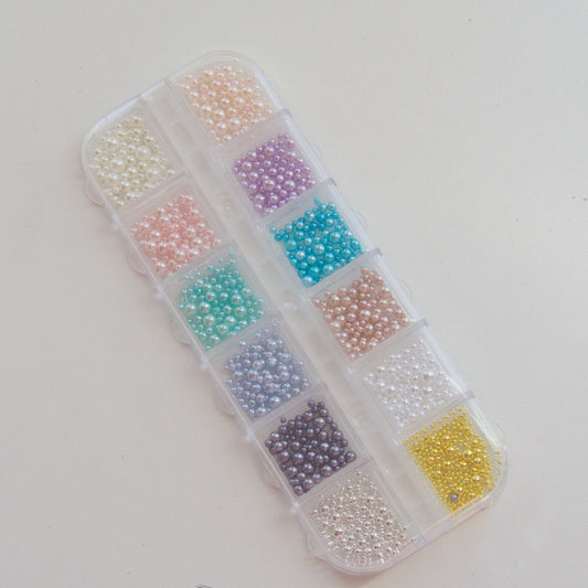 12 Grid Colorful Pearl Nail Art Accessories – Mixed Size Round Pearl DIY Nail Charms | Nail Decoration Set
