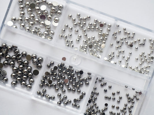 6 Grids Metallic Hemisphere Caviar Beads – Silver & Gold Semicircle Nail Rivets | 3D Nail Art Decorations