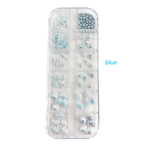 12 Grid Starfish & Seashell Nail Charms Set – Aurora Ocean Conch Palm Tree Nail Accessories | DIY Press-On Nail Gems