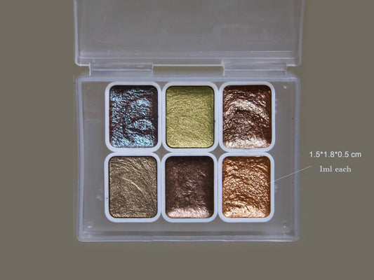 6pcs Pearlescent Glitter Metallic Watercolor Assorted Colors
