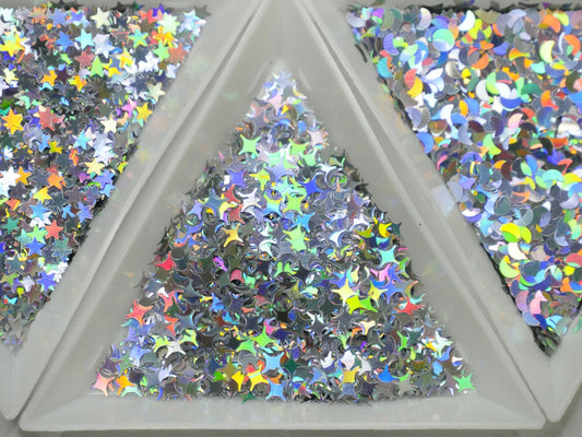 Halo silver Nail Flakes 3D DIY laser Sequins/Mermaid silver star heart starry shaped glitter flakes for nail gel UV resin nail polish