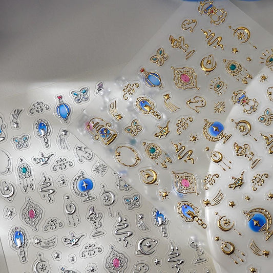 Mystic Gold & Silver Nail Art Stickers: Celestial Snake, Moon, Stars