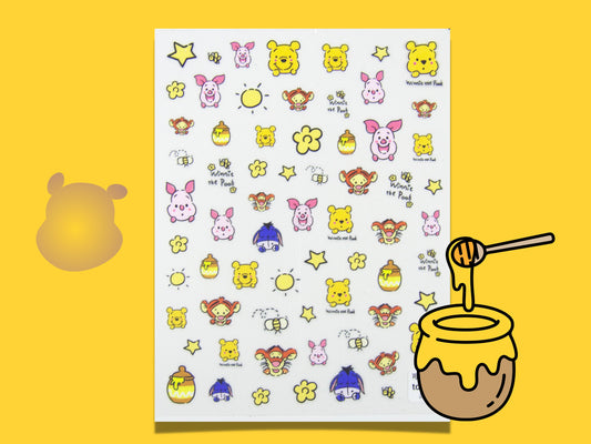 Winnie-the-Pooh Nail Sticker/Disney Theme nail Decals/Pro Chibi Burger Cartoon Teddy Bear Tigger Honey Piglet Kanga Roo Peel Off Nails