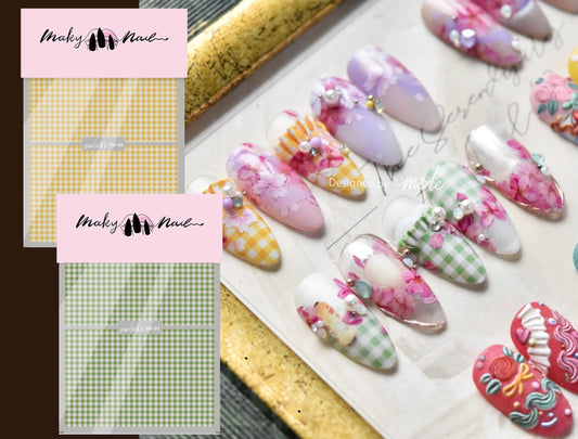 Plaid Pattern Nail Art Sticker/ Ultra Thin Checkered Grids Peel Off Tips Stickers