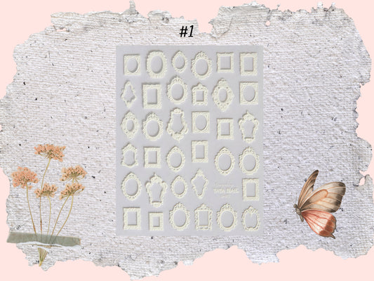 3D Embossed White Nail Stickers/ Snow Flake Nails/ Wedding Bride Laces Nail Art Floral Peel off stencils/ Butterfly Retro Renaissance