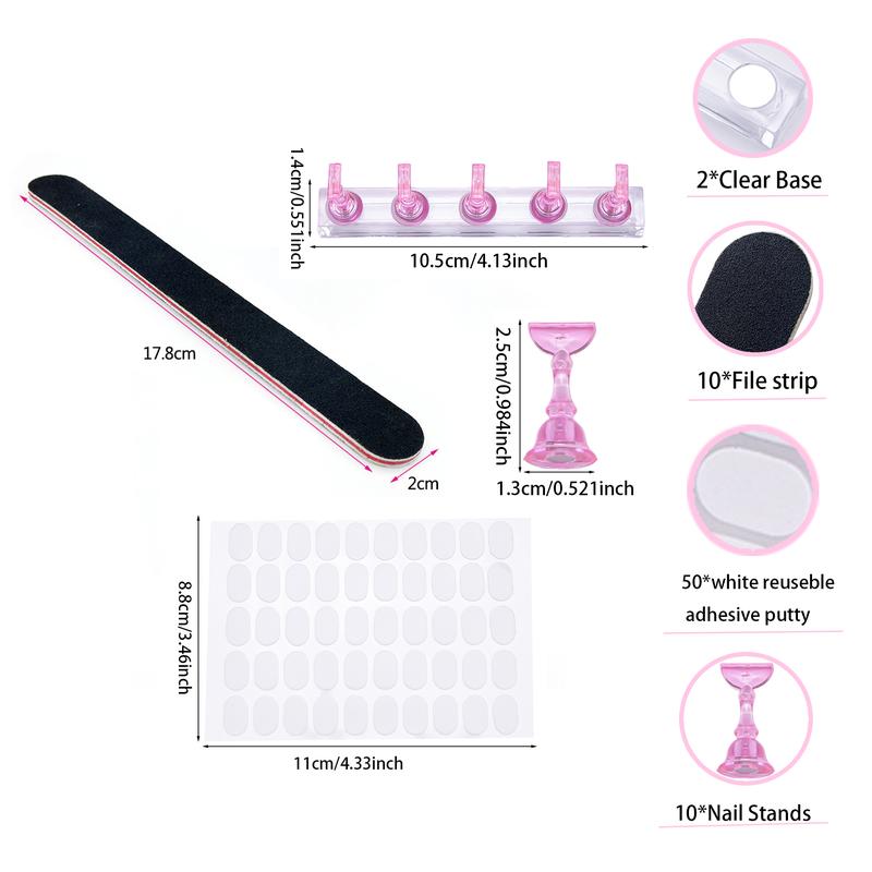 Nail Stand Kit for Press On Nails Display Practice with 10 pcs of black nail Files and Double sided Tape