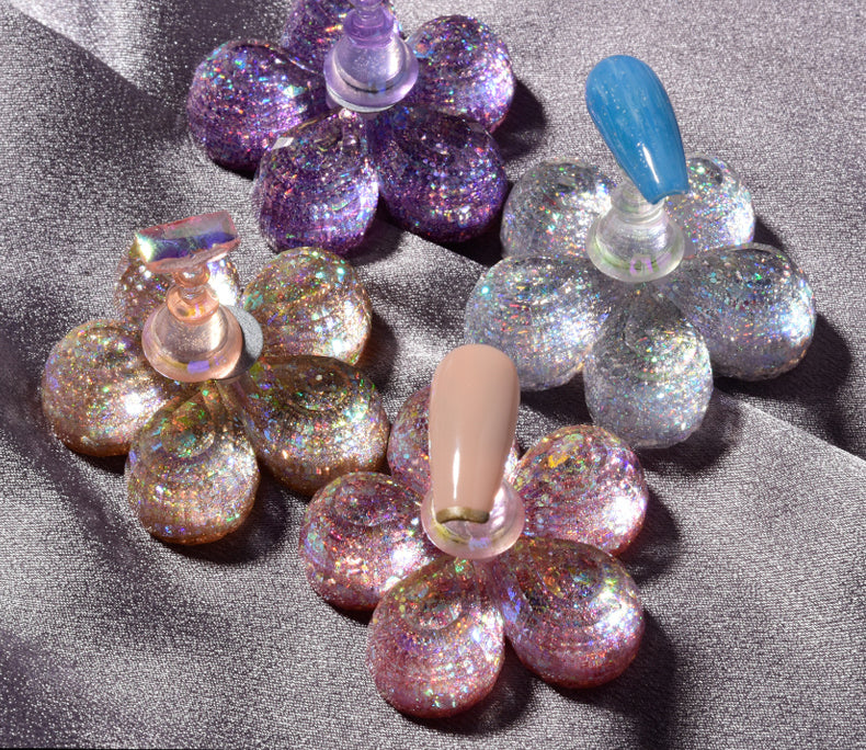 Flower False Nail Display Stand Holder Press On Nail Tips Practice Holders Glittery Floral Manicure DIY Tools Display Nails tool