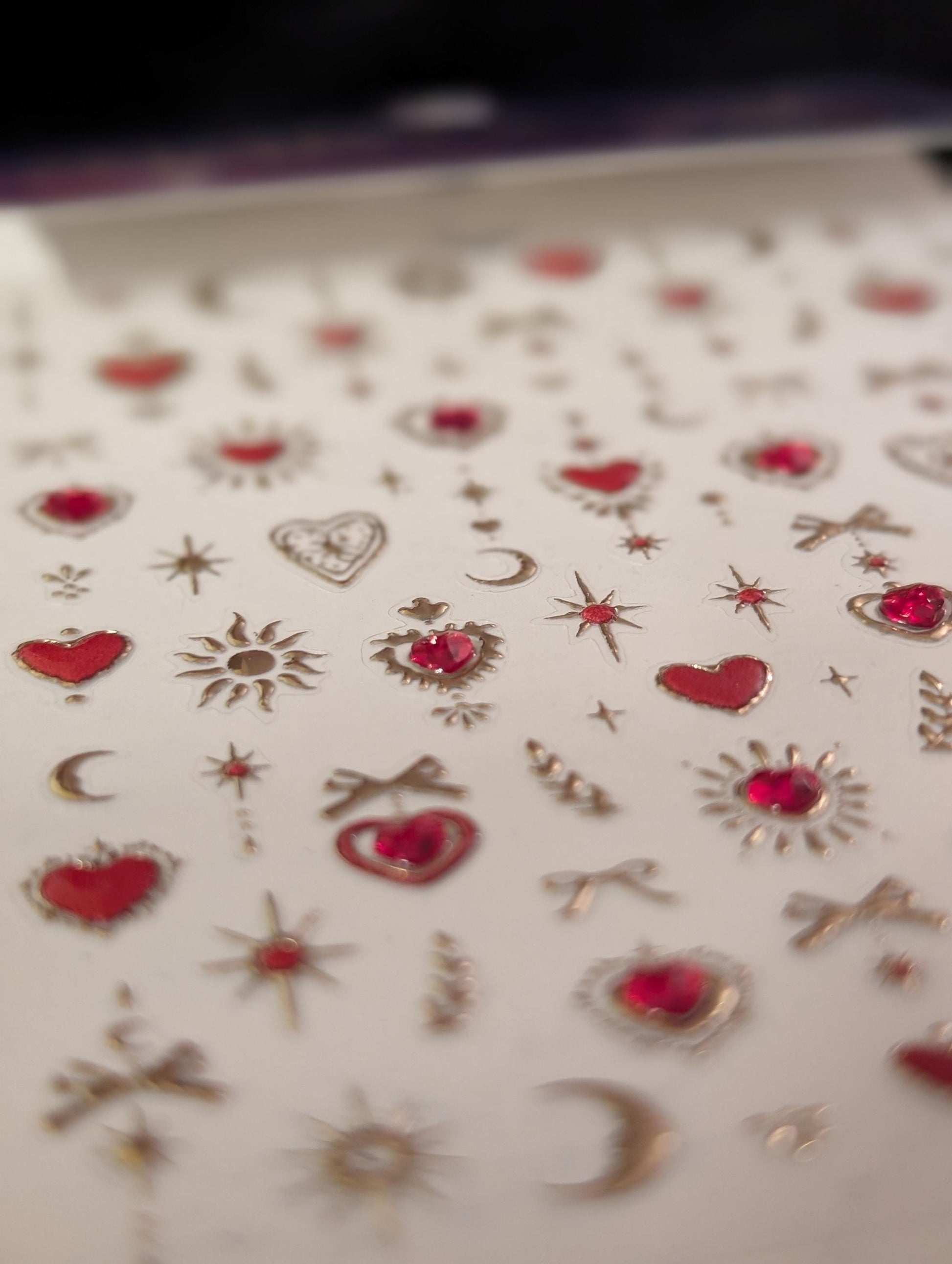 Gold 3D Heart Moon Nail Stickers: Embossed Spiritual Nail Art