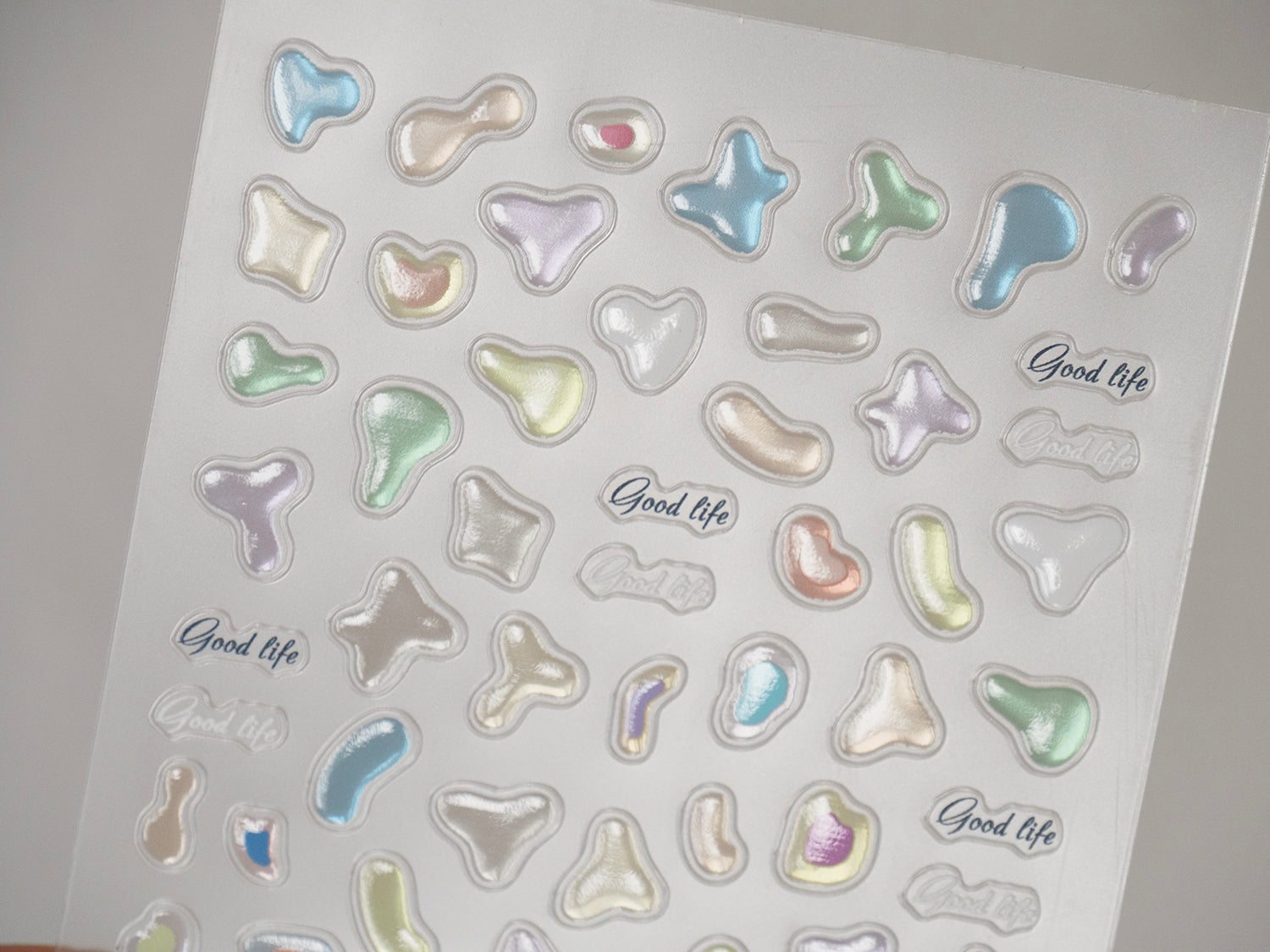 Create a sweet, dreamy manicure with these INS-style soft jelly nail stickers. Designed with transparent jelly-bean textures, 3D embossed water drops, and cute flower elements, these decals give a clear, glossy, candy-like look that’s both playful and delicate.