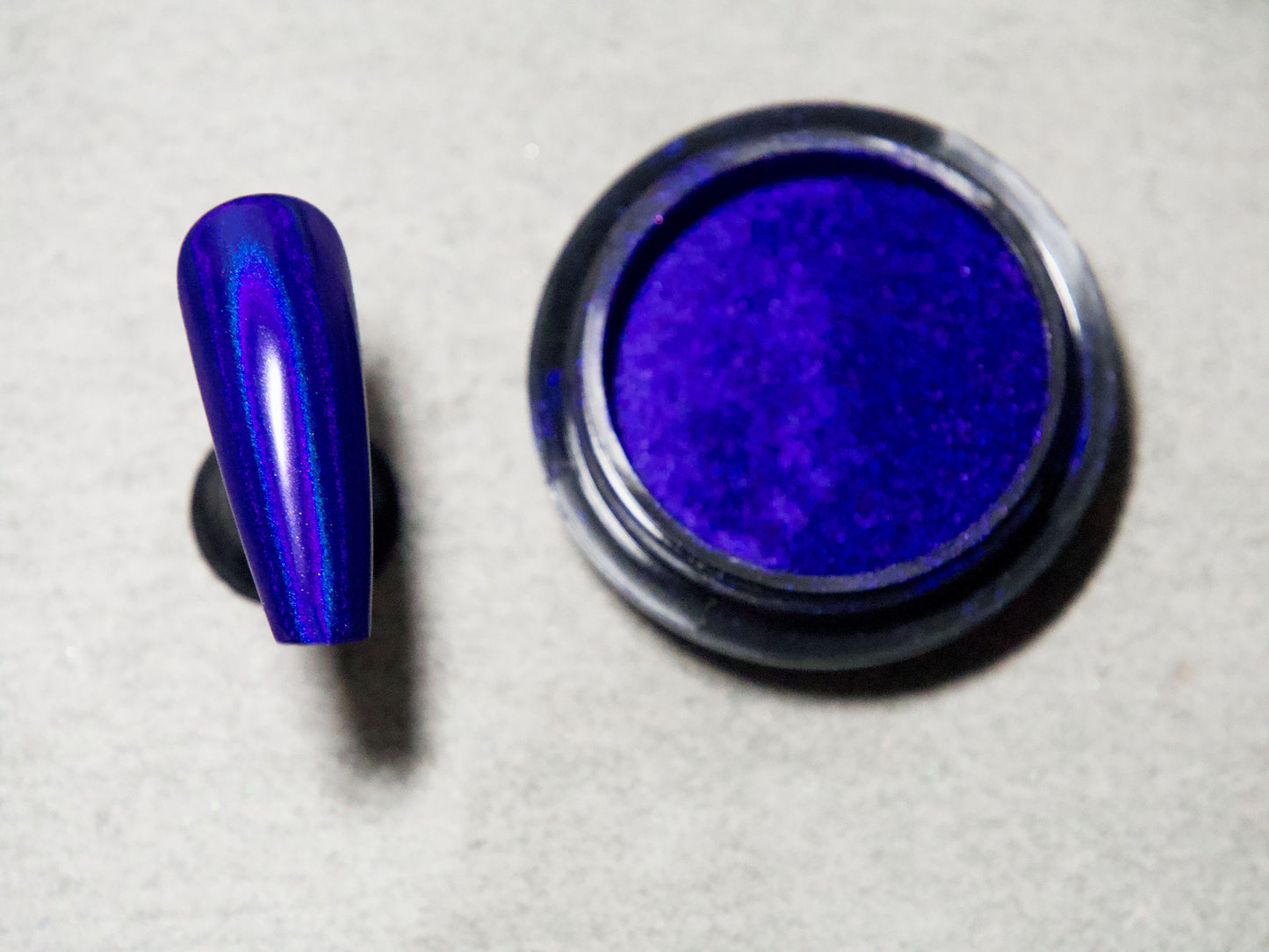 3. Gently press or rub the powder onto the nail's surface. You should see the shimmer, chrome, or holographic effect start to appear.