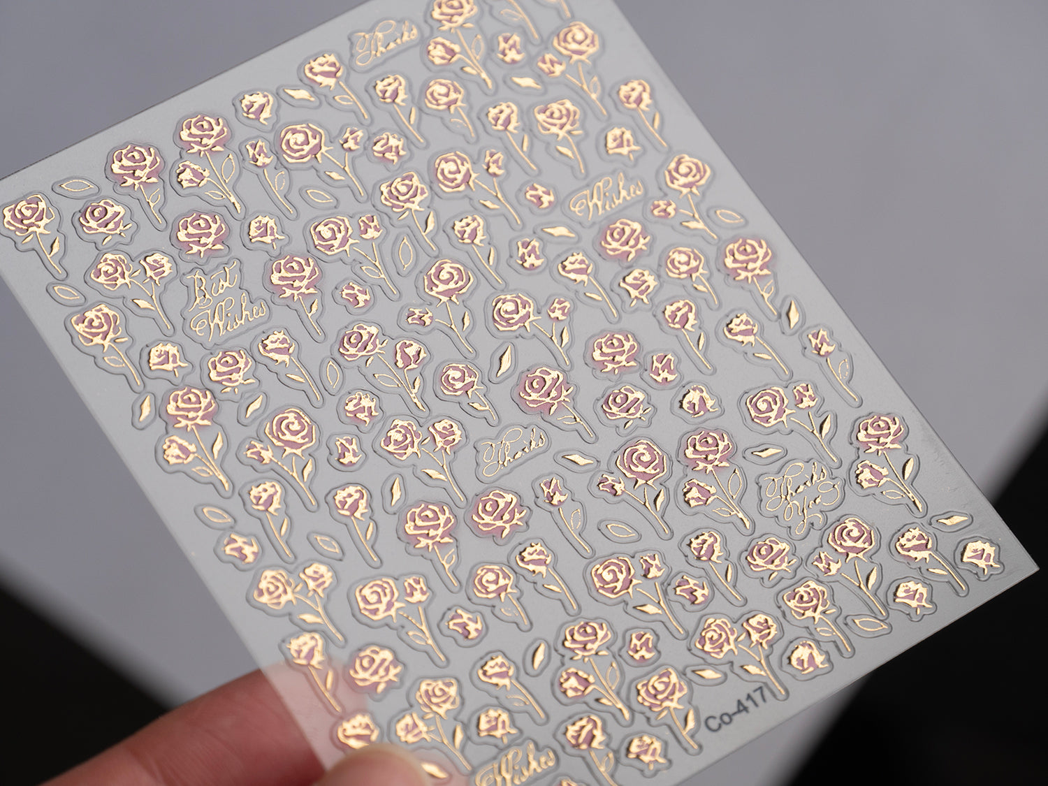 Fresh Rose Nail Stickers – 3D Embossed Gold Foil Frame Floral Nail Decals | Elegant DIY Rose Nail Art